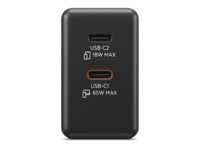 GaN - AC 100/240 V - 65 Watt - output-stikforbindelser: 2 - sort