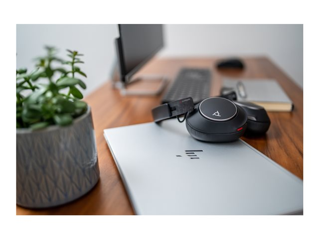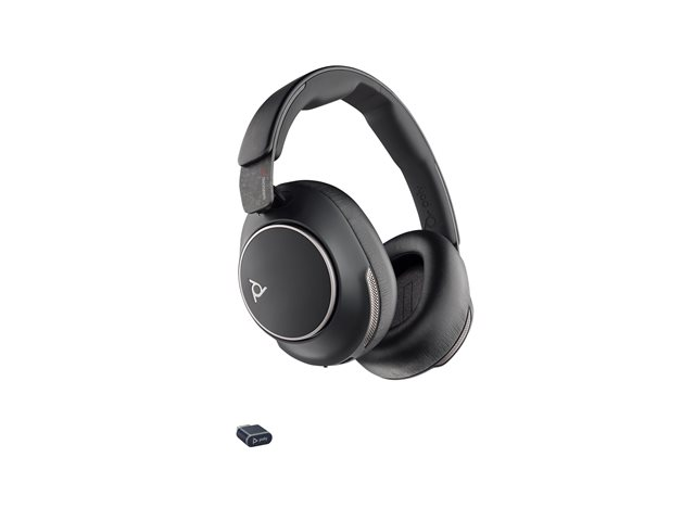 Voyager Surround 80 series - headset - fuld størrelse - Bluetooth - trådløs - aktiv støjfjerning - USB-C via Bluetooth adapter - sort - Certified for Microsoft Teams Open Office