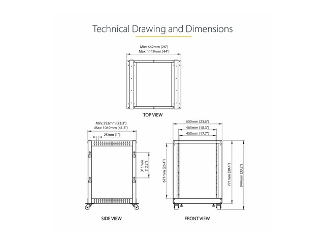 Startech 15U 19" Open Frame Server Rack, 4 Post Adjustable Depth 22-40" Mobile, Free Standing Rolling Network/Computer Equipment Data Rack, Dell PowerEdge, HP ProLiant ThinkServer